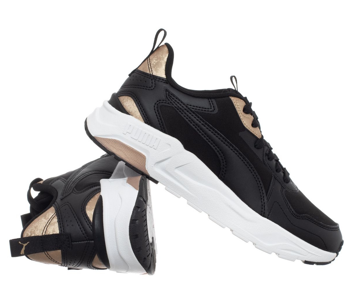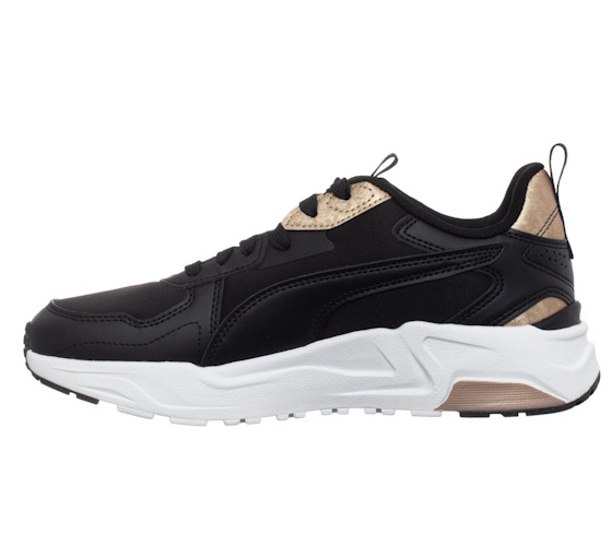 Производител: PUMA • Модел: TRINIITY LITE METALLICS WNS 389293-01 • Цвят: черен, сламено злато • Материал: синтетичен материал, текстилен материал • Междинна подметка: IMEVA технология за лекота и амортизация. • Гумена подметка за сцепление. • Закопчаване с връзки. • Нови, оригинални обувки с комплект етикети на производителя, опаковани в картонена кутия.