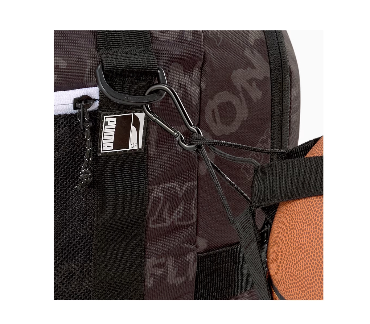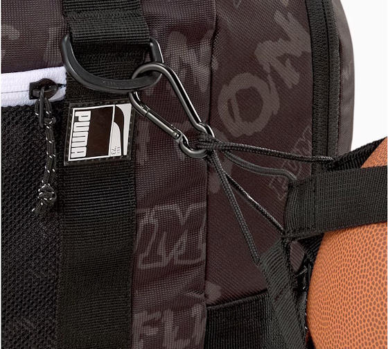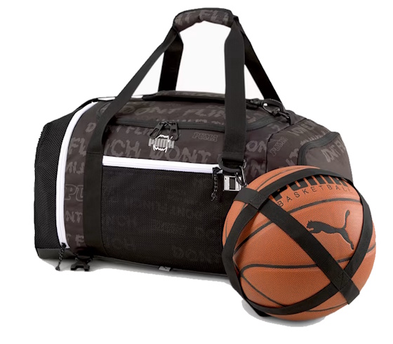 Спортна чанта, раница, 2-в-1 чанта, чанта за тренировка, чанта за пътуване; Puma Pro Basketball Duffle Bag; модел:077988_04,размери:приблизително 53 x 28 x 25 cm;обем: 50L;може да се използва като чанта за носене или раница;страничен държач за топка,Двупосочен голям цип за отваряне на основното отделение; Двупосочен цип за отваряне на страничния мрежест джобМрежест джоб за баскетболна топка; Отделение за обувки с цип и вложка от въздушна мрежа за вентилация отстрани; Подплатени и ергономични раменни ремъци с въздушна мрежа; Регулируем ремък за гърдите за по-добра стабилност; Подплатен гръб от въздушна мрежа; Две дръжки от лента с подплатени съединители; Малка дръжка от лента за носене от едната страна; Лого на PUMA отстрани
